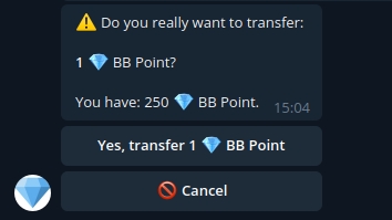 "\n have now: " + String(admin_bb_points) + "💎 BB Points"